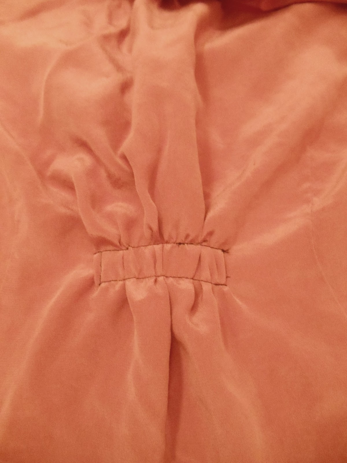 BACK: I ironed the blouse before wearing, including the new pleats that were formed with the elastic addition. I LIKE!